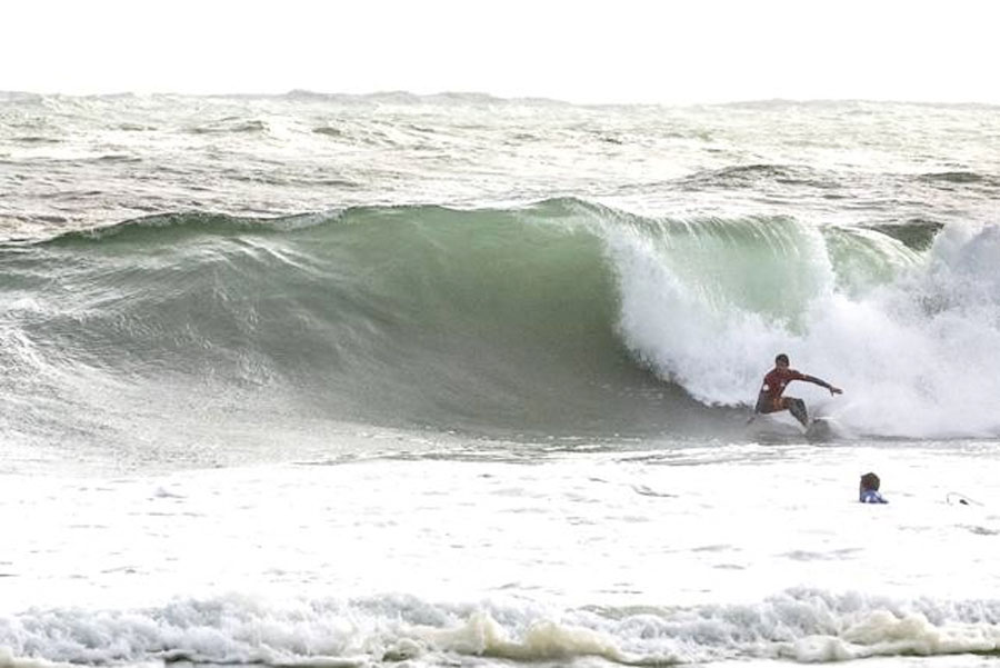A giant swell and strong crosswinds did not prevent the competitors in the Jordy Smith Cape Town Surf Pro pres. by O’Neill, from producing excellent performances in what can only be described as ‘victory-at-sea’ conditions on the opening day at Melkbosstrand north of Cape Town on Thursday.