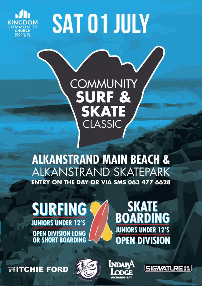 If you are a surfer, skateboarder or a fan, then come down to Alkantstrand Main Beach & Skate Park in Richards Bay, and show us your skills in the Community Surf & Skate Classic! The events feature both open and Junior divisions and the aim of the day is to have some serious fun! So come on down and enter this exciting event, bring your A-game and enjoy the day, make new friends and perhaps win a prize or two.