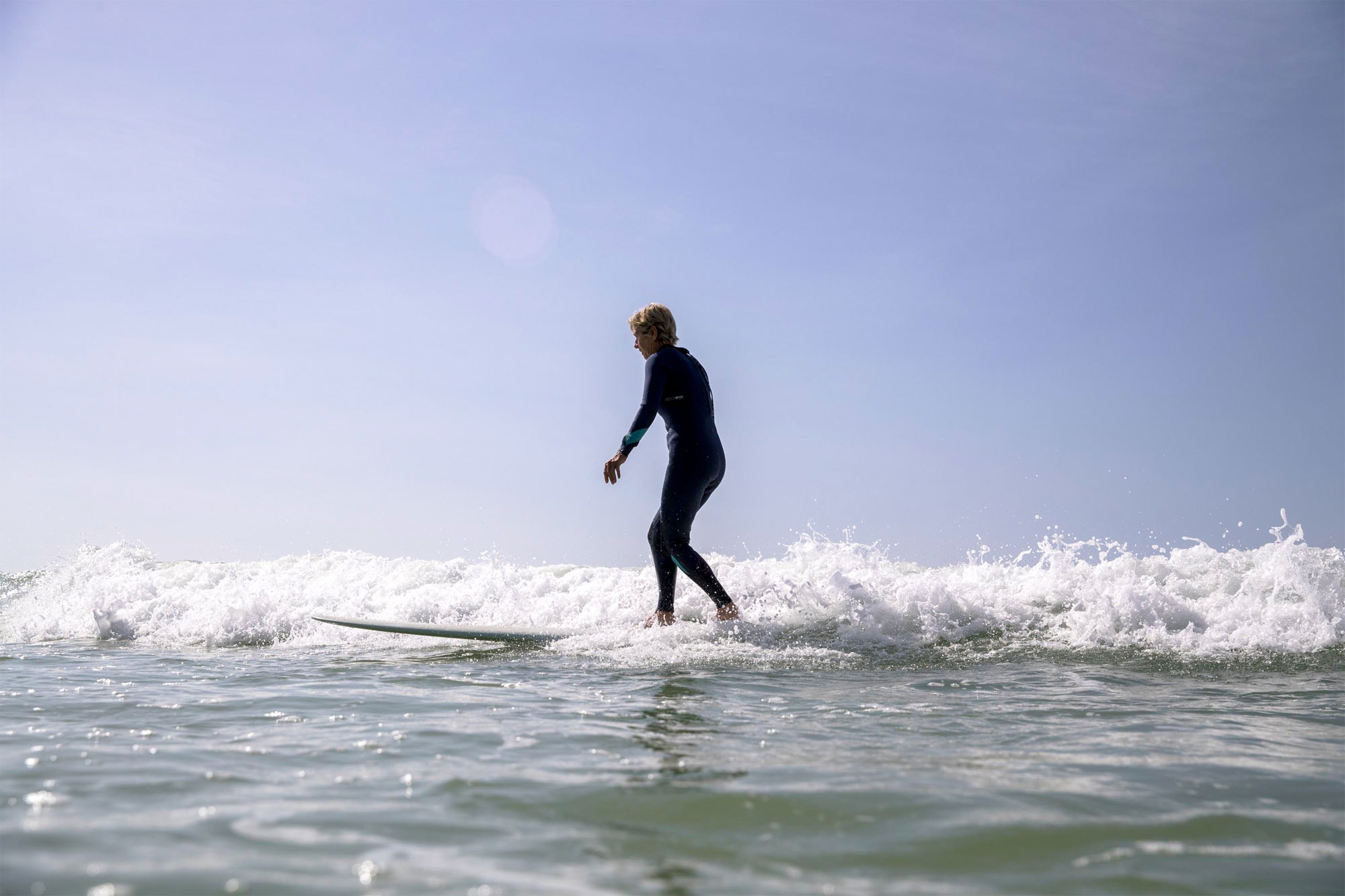 Bernie (70) is now a grandmother to 8 children, having had 3 major hip operations and is back in the ocean gracefully sliding and inspiring young and old.