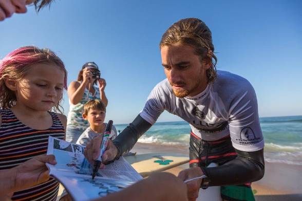 uMhlanga local and former Ballito Pro quarterfinalist Beyrick de Vries signing autographs for his fans