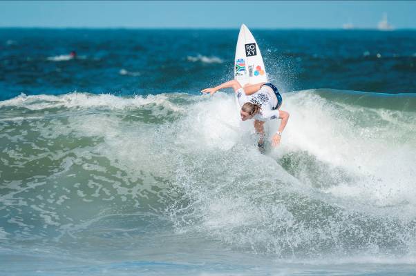Zoe Steyn, in just her second international event at this level, started the day in Repercharge Round 4 and progressed to Round 5. There the East Londoner finished fourth in a stacked heat that included three current CT surfers in three-time World Champ Carissa Moore (USA), defending ISA WSG champ Sally Fitzgibbons (Australia) and Johanne Defay (France). Steyn exits the event in equal 29th place, earning 340 points for the team.